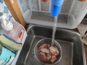 一昨日の夕方に仕込んでおいた燻製の食材を冷蔵庫から出して、