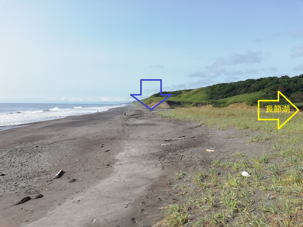 湖の水が海に流れ出る場所ですが、やはり砂で塞がっています。