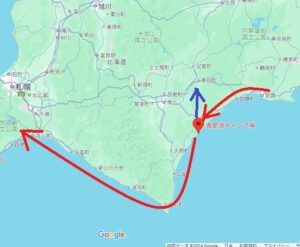 右上から来たので、その流れから行けばそのまま南下して襟裳岬の方に行くのでしょうが、