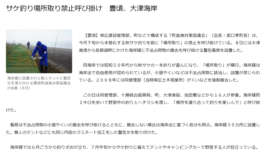 海岸には無数のシャケ釣りの釣竿が立っています。