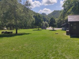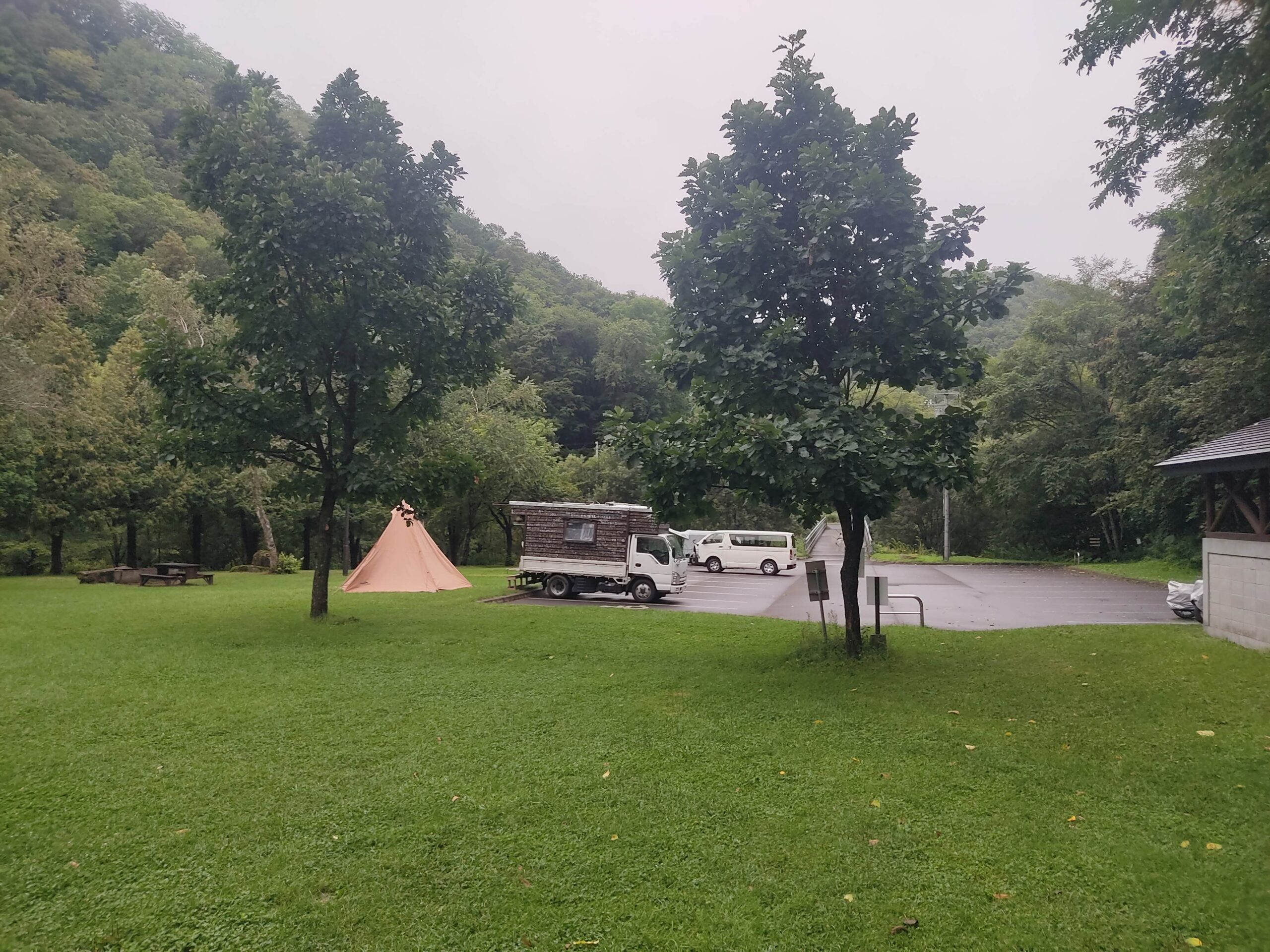 第1キャンプ場にはキャンピングカーがたくさん停まってます。