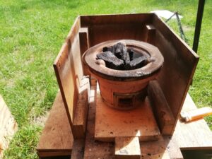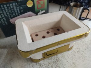 七輪の縦の長さより串の食材の部分が長すぎますね。