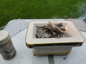 案の定、丸いヤツより面積が広いので炭の火力を均等にするのがちょい難しいですね。