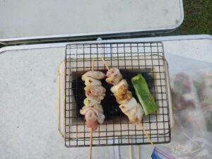 焼けることは焼けるのですが、丸いので串焼きには向かないのです。