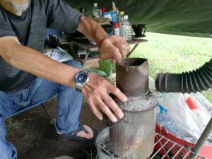 徳舜瞥山麓でMYロケットストーブを師匠にみてもらうのだ