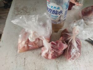 燻製の食材をソミュール液に浸して明日の準備をします。