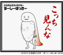 ずーしーほっきー:北斗市特産のホッキ貝と、地元のブランド米「ふっくりんこ」を使った、ホッキの握り寿司をイメージしている。Wikipediaより
