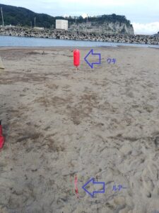 ルアーの下の2本のでかい針にはおとうさん特製の餌を付けます。