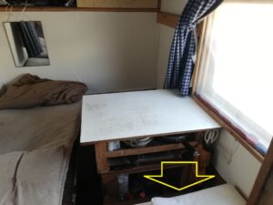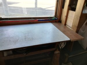 テーブルと同じ高さに15センチほどの板を取り付けて、テーブルを横向きにします。