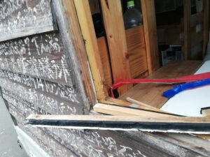 おそらく余裕を持たせずにがっちりと作ってしまったために、木枠が湿度の変化によって伸び縮みしているうちに耐え切れずに割れてしまったのでしょう。