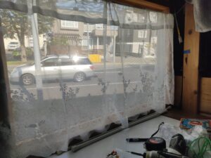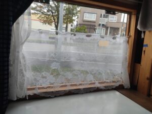 さらに半分ほどの長さのカーテンも付けて状況によって明るさを確保できるようにします。