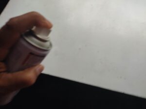 そして長年の使用で剥げてしまったテーブルにスプレーを掛けて補修します。