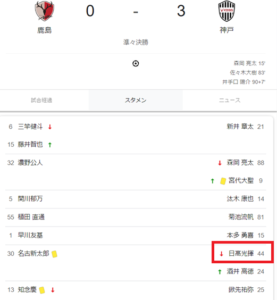 今年9月に行われた天皇杯準々決勝の鹿島戦で先発して勝利に貢献していました。