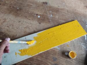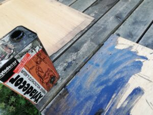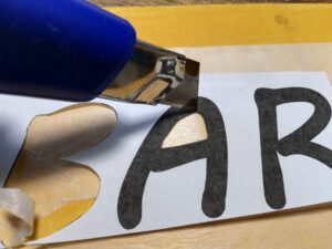 マスキングテープを貼って下書き用の紙をその上に貼りカッターで丁寧に切っていきます。