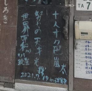 3年前に淡路島で会ったサッカー少年たちに書いてもらったべニア板を