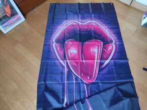 ローリングストーンは スラングで ならず者とか 風来坊を意味します 青の 4号には ぴったりじゃないでしょうか。 有名なベロマークとはちょっと違うようですが 室内の天井に貼られたらどうでしょう。
