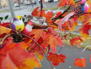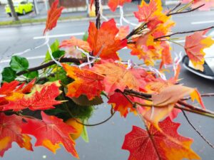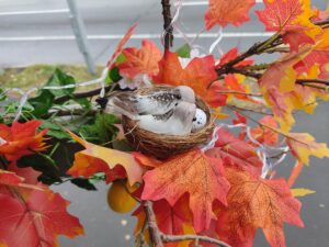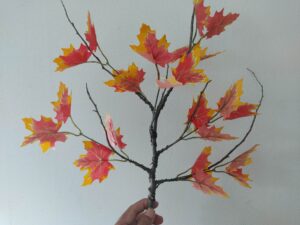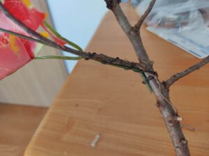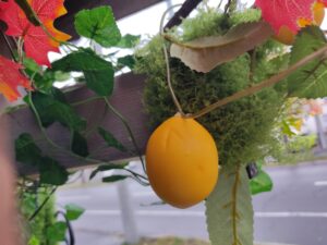 ダイソーで仕入れたレモンを付けます(←真っ赤な柿にしたかったが無かった)。