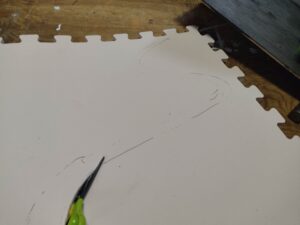 次に使わなくなったフロアーマットにざっと線を引いてハサミで切り、
