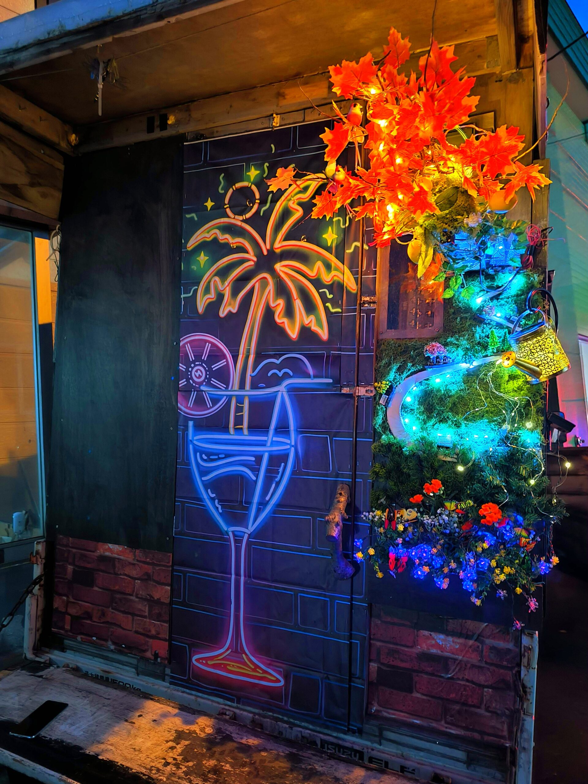 そしてトロピカルなドアカバーもまわりの光に照らされて輝き出しました。