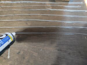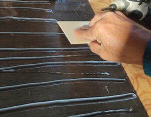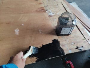 べニアをサイドの大きさに切って防腐材を塗ります。