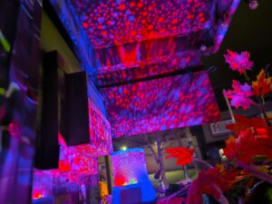 4×4建材の上に密かに仕込んでおいたライトを点灯させると、天井にまばゆいばかりの満天の星空が出現します。