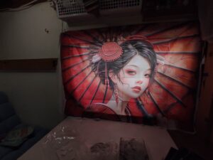 逆側の壁にもちょいエロティックなネオンサインを付けて