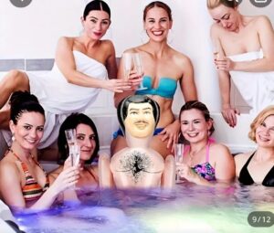 おねーさんたちがこの方を囲んで楽し気にプールかなんかに入ってますが