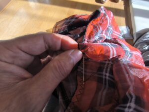手をクロスして後ろに回し、背中側をたくし上げて裾を上にじりじりと1ミリ単位で慎重にあげていって