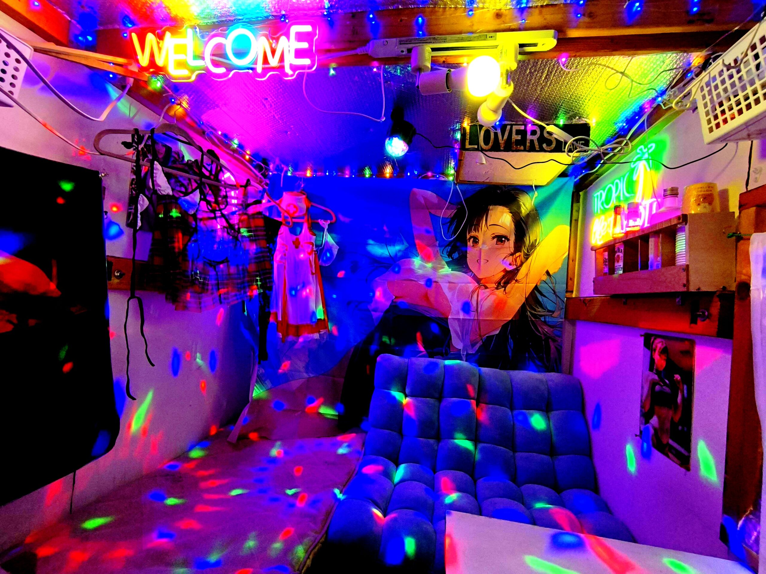↑左端に吊るしてあるコスプレ衣装は着放題です。
