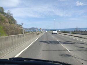 また山の中に入り、噴火湾沿いの長万部に出て海岸線をしばし走ります。