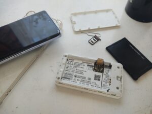 スマホからマイクロSDカードを取り出して車内用のポケットwifiにセットします。