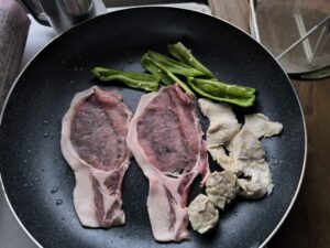 12分経ったらメスティンを下ろしてフライパンを乗せて焼きます。