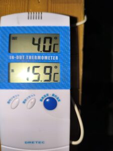 実は去年秋の窓の改造で、それまでの3㎜✖3㎜のアクリル2重窓から、5㎜1枚に変えたので防寒性が気になったのですが、