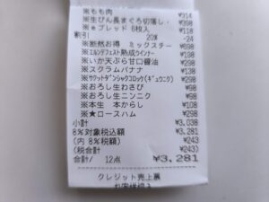 支出:450円(風呂)+3,281円(スーパー)=3,731円