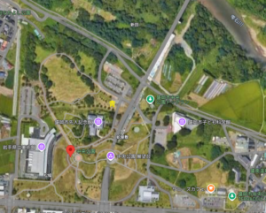 風呂のすぐ近くの車中泊ができるらしい公園に移動します。