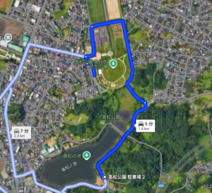 この高松公園は高松池を中心に広がる広大な公園で、駐車場があちこち(たぶん7か所くらい)に点在していて、その中の何か所かが24時間停められるのです。