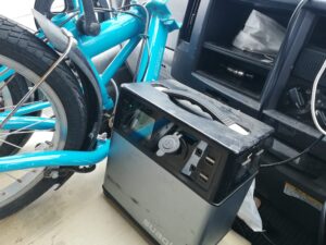 予備のバッテリーを運転席に乗せて走行充電します。