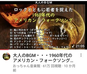 2. YouTubeの「おっちゃん音楽館」良いですよね。「1960年代のフォーク・ロック」聴いてみます。昔のサントリーのCM って本当にかっこ良かったですよね。開高健がいたからですかね。 CMにそそのかされて2000円もした「ダルマ」を無理して飲んでいました。今は980円でスコッチが飲めて、良い時代になりました。