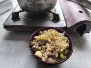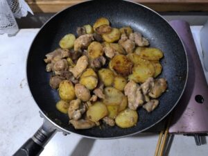 グジャグジャかき混ぜながら焼くと出来上がりです。