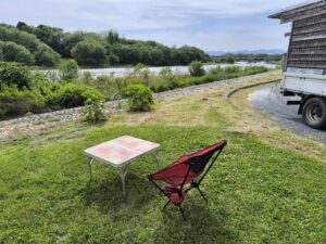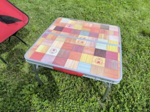 去年の夏に旭川21世紀の森で青の居酒屋を開いたのですが、その時シュウジロウが持っていたテーブルが理想のサイズ(90㎝×90㎝)だったのです。