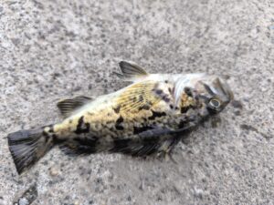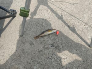 最初は、つんつんつんと軽い手ごたえだったのですが、ピンっと竿を合わせると