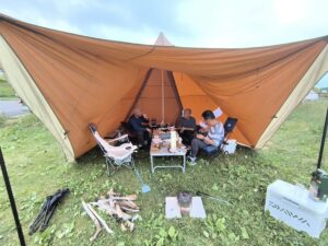 あのテントからずっと話し声や笑い声が聞こえてきているのですよ、おねーちゃんたちの