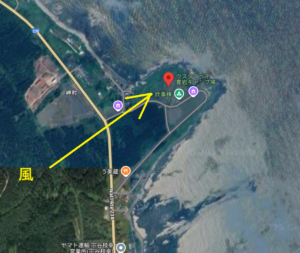 風は南西方向から吹いてくるので、もしかしたら陸地の林で和らぐのではないか。