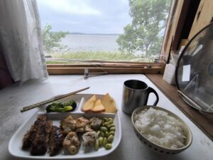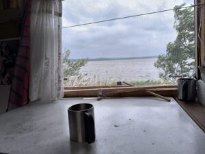 コーヒーを煎れ、窓の外の荒れ狂うクッチャロ湖をぼうっと眺めます。