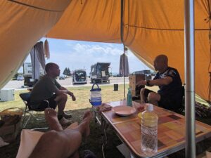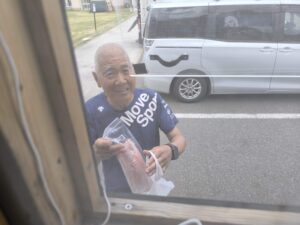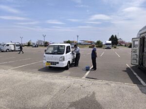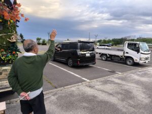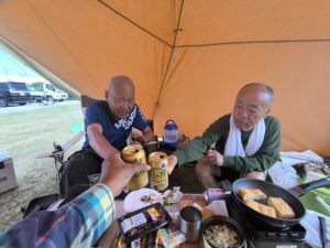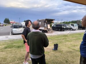隣でキャンプをしていてホタテを持って来てれた漁師さんが帰るようです。