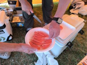 昨日、おとうさんがファンの方からいただいたサクラマスを切り、