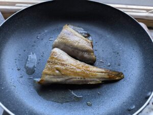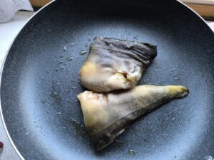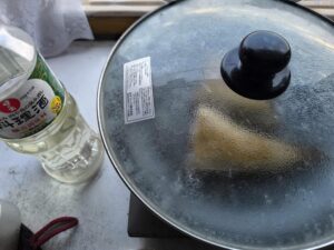 酒と水を大さじ一杯づつ入れて4分蒸し焼きにし、