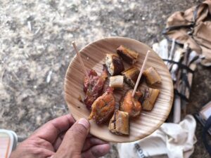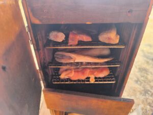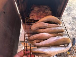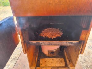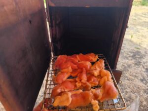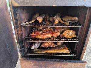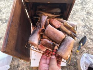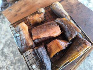 あとは一時間おきに炭、チップを補給し、各網の位置を移動するだけです。