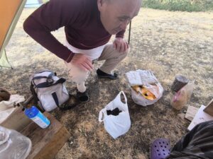 キラーカーンの管理人さんが炭を持って来てくれました。