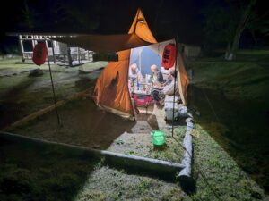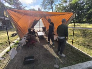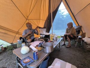 誰ともなくテントに行き、昨夜の後片付けを始めます。